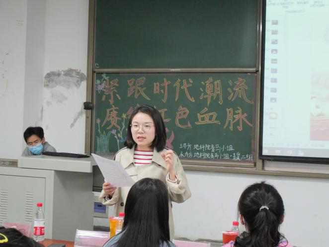 本次活动的主题为“紧跟时代浪潮,赓续红色血脉”,由“青岚”一组组员进行答辩,“青岚”二组组员进行筹办工作,活动邀请到太阳成集团122ccvip团委书记郭霖老师和太阳成集团122ccvip第一届青马小组班导郑娜为评委。