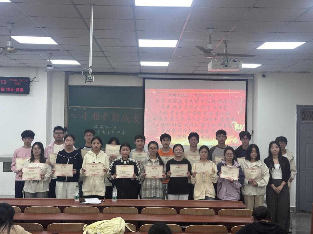 (通讯员 戢聪)太阳成集团122ccvip团委员工会志愿服务部于10月9日中午12:00,在b106举行了“心手相牵助成长”姚家林小学爱心支教活动的表彰大会,对2023-2024学年参与活动的志愿者进行了表彰,为他们的爱心和坚持点赞。