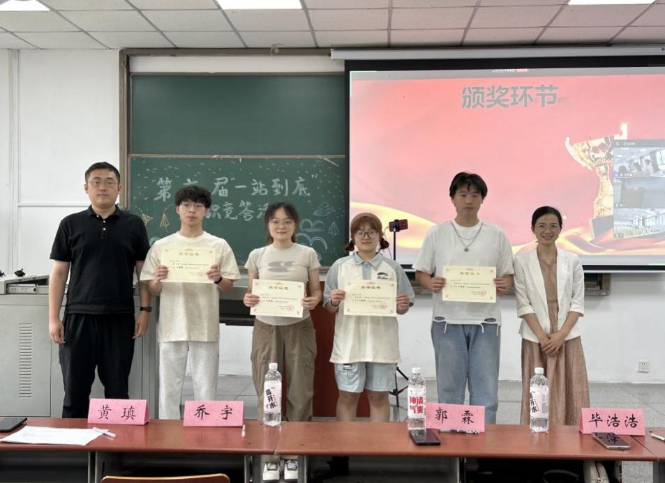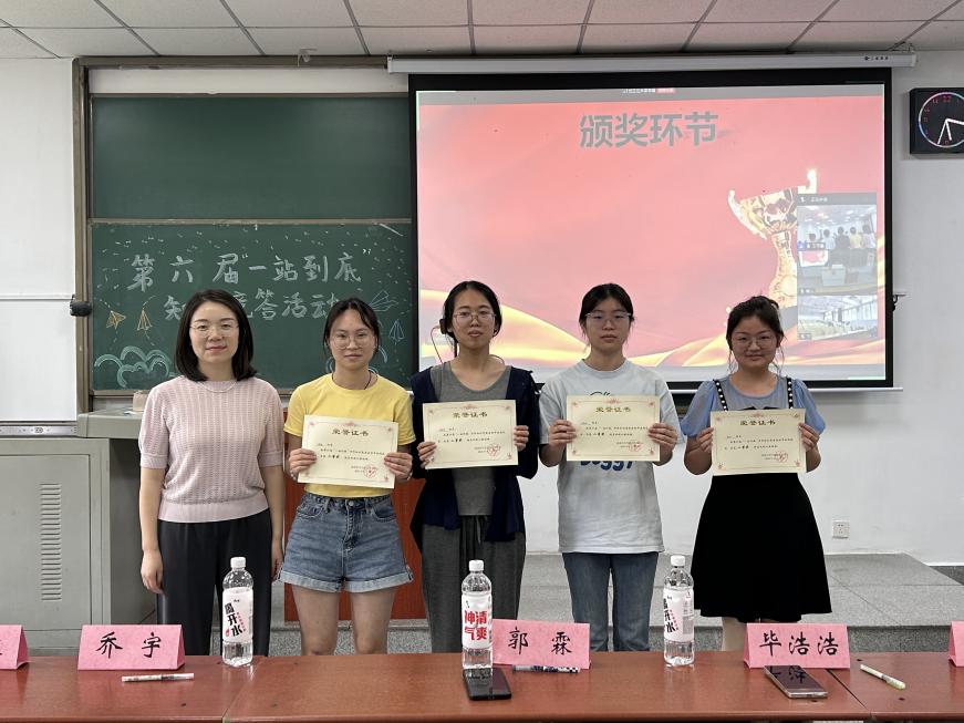学工办全体师为获奖队伍颁奖并合影留念,太阳成集团122ccvip第六届“一站到底”百科知识竞赛在欢笑声中圆满落幕。