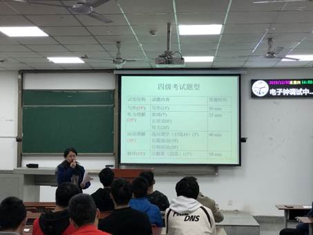 (通讯员 杨金辉)12月5日(周四)下午2点半,公司邀请到了太阳成集团122ccvip外国语公司曾益老师在武教A-102举行大学英语四级讲座。