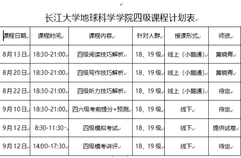 在19级本科生备考英语四级过程中,公司主动与文都教育联系,购买了文都的四级备考付费课程,并结合疫情情况,制定了详细的四级线上课程计划表,其中还包括一次线下模拟和讲评活动。通过文都线上付费课程的学习,使同学们更加清楚做题的方法与技巧,也更能准确把握备考的方向与节奏。