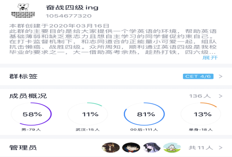 英语学习需要时间、经历的不断投入,老员工英语四级考试更是一场持久战。公司四级备考工作在公司领导的带领下,早早制定了详细的方案。根据方案在19级本科生入学的第一学期,公司就组织了四级备考经验交流活动,活动分为阅读、听力、翻译和写作三个主题,共邀请了六位优秀学长学姐结合自己的特长优势,分享备考经验。同时在大一下学期伊始,公司由辅导员组织开展了19级本科生四级备考线上动员会,会上就四级考试的重要性、公司的相关文件、公司的方案措施、四级考试的分值题型等做了详细讲解,并在会后及时创建四级备考QQ群(群名:奋战四级ing)。自此群创建以来,共141名同学加入,每日打卡率约为90%。据悉,此群的建立为员工学习英语营造了良好的外部环境,也极大提升了大家的学习积极性,有利于考生夯实基础、更好备考。