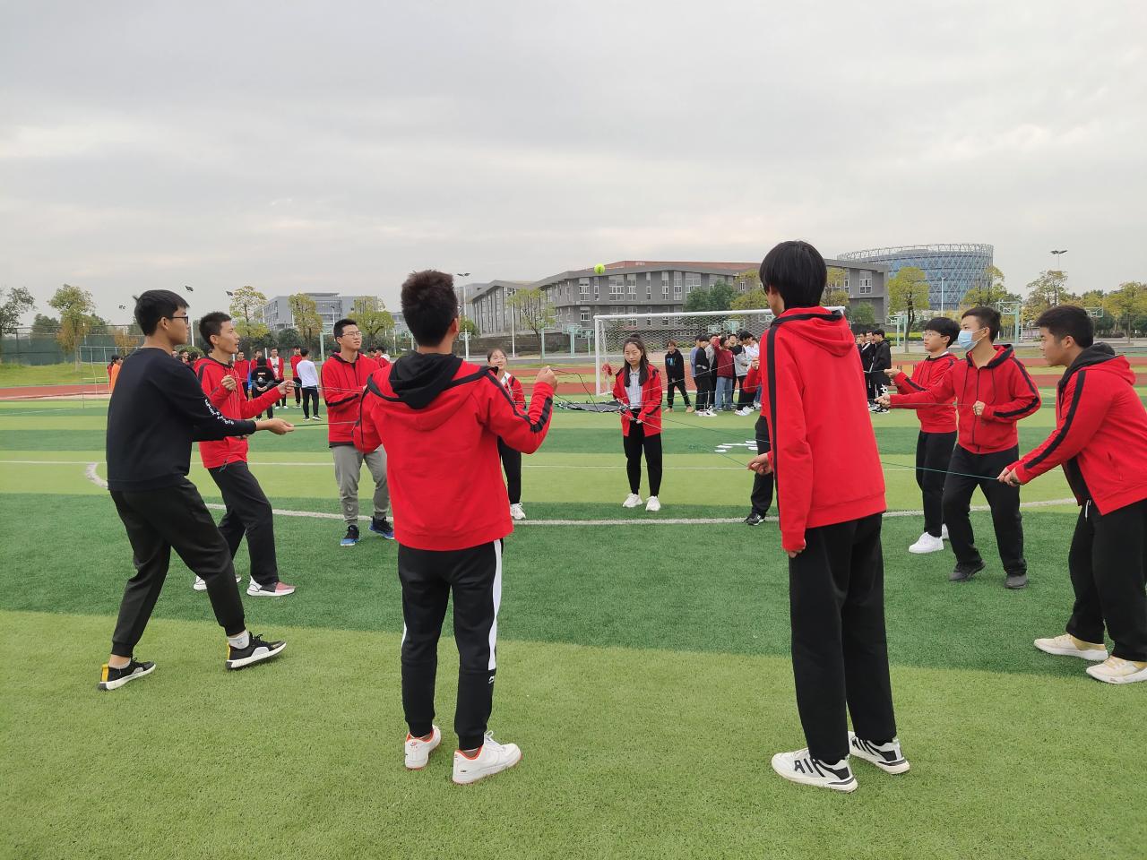 最后,是游戏环节,班级以每一个队伍为单位进行游戏大比拼。在游戏中,每个队伍的成员相互配合,在最短的时间完成每一个任务。