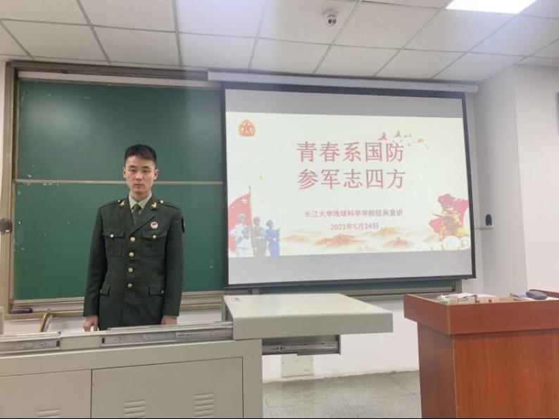 投身绿色军营,逐梦无悔青春。宣讲会上,李森向大家分享了自己的参军历程,并以军人的精神和自己在部队中的所见所闻、所感所想为出发点,感染在座的同学。当宣传视频中出现飒爽的军人形象和撼人心魄的火炮声时,现场气氛高涨,将同学们的“参军梦”瞬间点燃,也将当日的宣传讲座推向高潮。