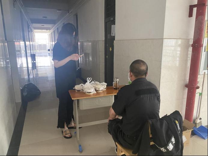 此次隔离,公司将六位同学集中隔离在三栋三层的宿舍,一人一间,保证不出门,不接触。坚持每天测温上报,宿舍及公共区域每天都有专人消毒打扫。员工的早午晚餐都由志愿者到公司食堂取餐送到宿舍门口的小桌子上,保证了隔离员工的基本生活。