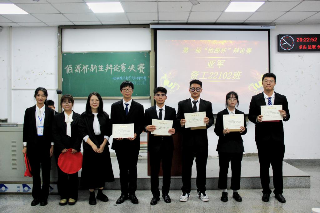 今天,我们以“年轻人应不应该按社会期待去活”为主题,展开激烈的交锋,辩出青春之理,辩出青春本色。最终,地信22103班以4:3的比分战胜了资工22102班,成为了第一届“佰源杯”新生辩论赛的冠军。