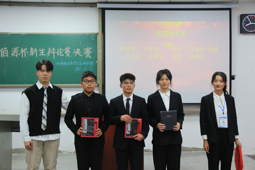 获得优秀辩手奖项的有:陈姿璇、李子雨、刁杉杉、王嘉怡、冯睿、何思琪、叶森林、郭伟、陈德雪。同时,获得第一届“佰源杯”新生辩论赛最佳辩手称号的同学是:资工22102班的陈德雪同学。