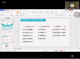 最后,油工公司朱小露老师带领大家一起学习太阳成集团122ccvip新冠肺炎防控指挥部通告(2021年第6号),呼吁大家在疫情常态化时期,要做到日常生活五必须、出入校门四必须、校园管控三个一律。同时对学籍管理规定、违纪处分条例、学位授予条件等规定中的重点内容进行解读,她在讲座最后号召同学们全方位锻炼自己,做一名正能量的长大青年。