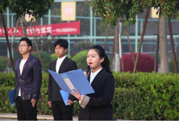 随后,陈姿璇同学勉励同学们,作为新时代的少年,要响应党的号召,扛起国家富强民族复兴的重大使命,携手同行,实现中国梦的伟大蓝图。并提醒同学们新冠疫情尚未结束,要切实履行防疫个体责任,做自己生命健康的第一负责人。