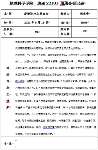 为便于班会开展,学工办事先提炼一份疫情需知,发给各班班主任。班主任与班长领学习疫情防控相关政策要求,在思想上高度重视,坚持“外防输入、内防反弹”总策略、“动态清零”总方针不动摇,增强主动防控意识。落实到个人行动上,一要强化个人防控措施,切实履行个人防控第一责任;二要严格遵守属地和公司防控规定,在健康检测、外卖快递、寝室安全、出行报备等细节上做好日常防护;三要从严从紧遵守校规校纪,如有违规违纪行为,公司将严肃责任追究。班主任老师还温馨提醒同学们临近夏季谨防溺水,近期校区球类比赛较多可以勤加锻炼,留心身边同学的社交动态,对遇到挫折的同学提供关心支持等。