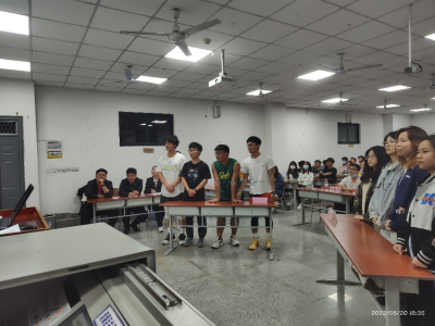 5月22日下午4时,在武教A108隆重举办了本活动的决赛,活动邀请到了学工办主任王红桥老师、院团委书记郭霖老师、辅导员张严老师和员工会主席陈星兆作为嘉宾观看比赛。