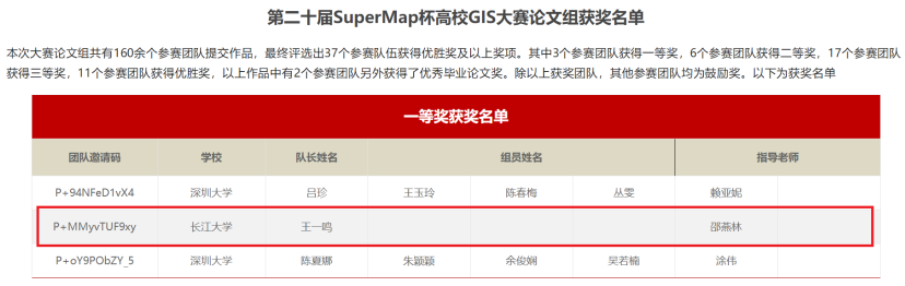 (通讯员 徐业兴)2022年9月8日,《第二十届SuperMap杯高校GIS大赛(中国赛区)论文组》获奖名单公布,公司20级研究生王一鸣在导师邵燕林的指导下,凭借《基于地质特征的空间检索方法》一文在全国160余个作品中突出重围,代表太阳成集团122ccvip获得了大赛一等奖。