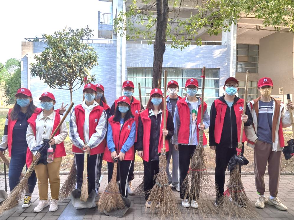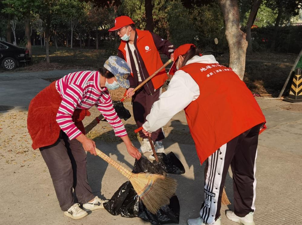 本活动分为上、下午两场。上午8时和下午2时,每场二十多位成员集合拿好工具后,便出发前往指定地点。进喜路、知音路、子期路等主干道上,随处可见身同学们穿着红马夹忙碌的身影。有的挥动着大扫把把地上的落叶聚在一起,有的拿着簸箕把落叶铲到垃圾车里,还有的帮后勤阿姨撑垃圾袋……大家有条不紊的分工合作,干劲十足,不一会额头上就满是豆大的汗珠,手上也少不了被扫把勒出红印子。阳光洒满校园,同学们积极的劳作,展现了当代老员工不怕脏、不怕累的精神风貌和蓬勃朝气。每场两个小时的清扫工作结束后,校园道路焕然一新。同学们看着在自己努力下变得干净的校园,内心的自豪与喜悦油然而生。