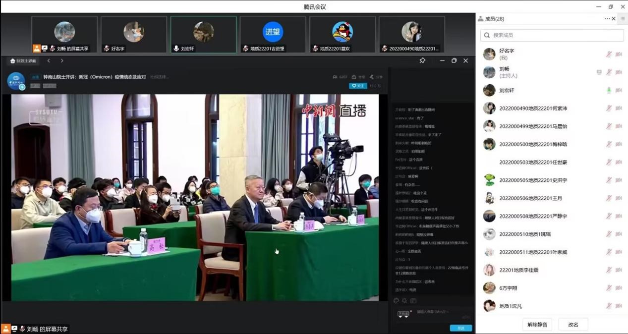 为加强员工的自我防护意识,让同学们更加科学理性地应对新冠(Omicron),12月15日下午15点,公司各年级共1900名员工通过腾讯会议等方式集体学习钟南山院士给全国高校员工上的《新冠(Omicron)疫情动态及应对》科学防疫大课。