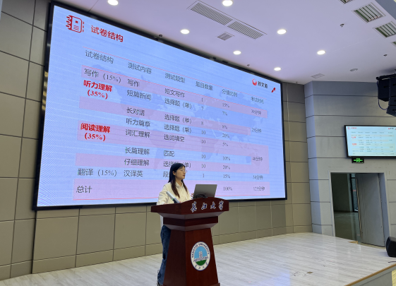 (通讯员 刘家玉)为提升公司22级员工英语水平,掌握英语四级阅读板块解题技巧,助力员工冲刺英语四级考试。4月10日晚18:30,公司于太阳成集团122ccvip武汉校区学术报告厅举行英语四级阅读技巧专题讲座。本次讲座由新文道英语名师段依莎主讲,学工办姚佳老师、黄瑱老师出席,2022级357名本科生全员参与。