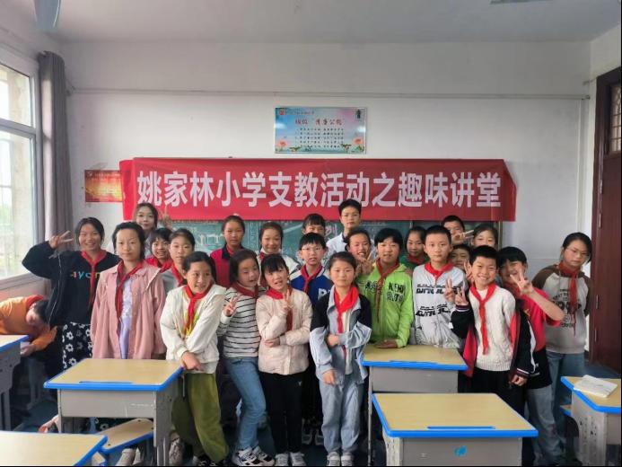 朱贵宇同学说:“很荣幸能参加本次支教讲座活动。开讲之前我有点紧张,担心小朋友们不积极配合,事实证明我想多了,小朋友们热情让我感受到他们对知识的渴望。希望以后能有更多这样的机会与小朋友们交流,同时也让自己收获成长。”姚家林小学五年级的张欣悦同学说:“今天的课程非常有趣,希望大哥哥大姐姐下次还来给我们上课。”