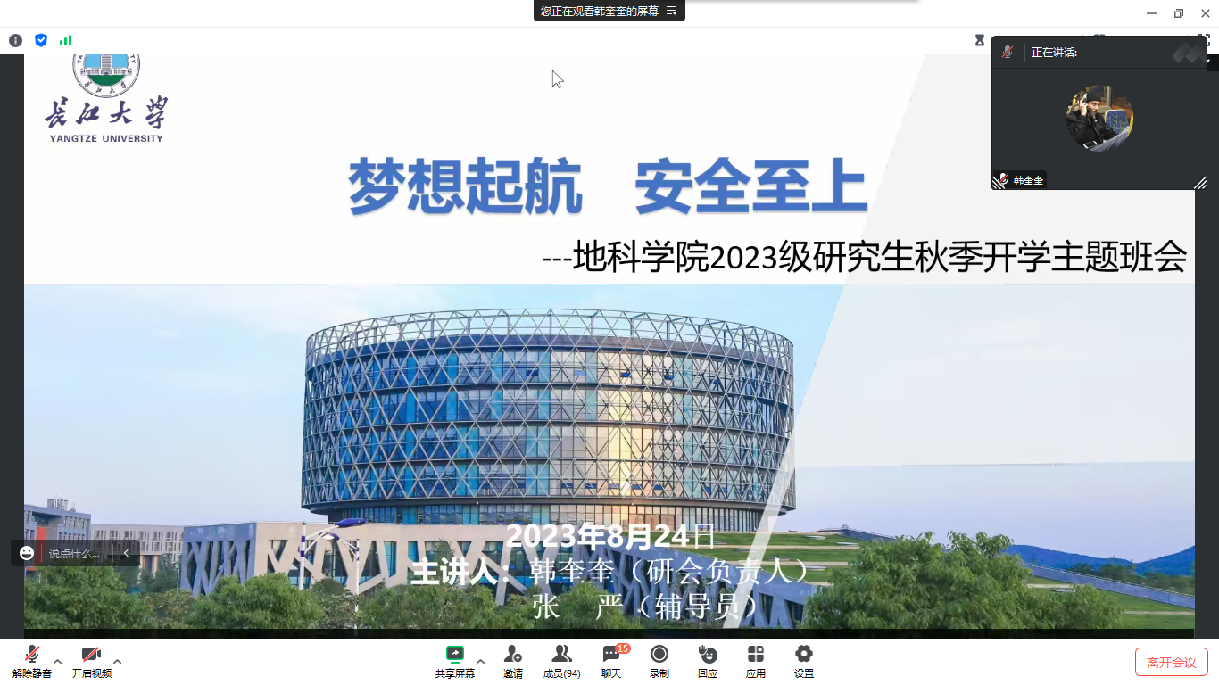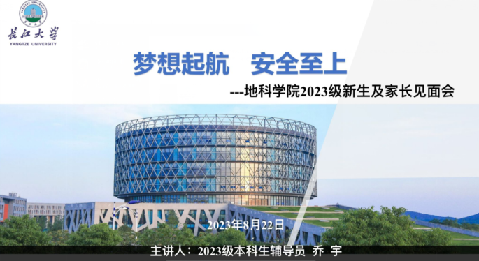 此外,2023级新生也于8月22日晚召开了“太阳成集团122ccvip2023级新生及家长见面会”,辅导员乔宇老师分别从公司概况、迎新安排、开学前安全教育和大家关心的其他事项四个方面向新同学以及家长做了详细介绍。此外还邀请到了地科22301班班主任陈旭老师讲话,他寄语同学们珍惜大学时光,合理规划时间,树立远大理想,为社会主义现代化建设贡献自己的力量。最后乔老师对员工及家长的提问逐一进行解答,提醒同学们假期内要保障自身安全,期待在知音湖畔与同学们相见!