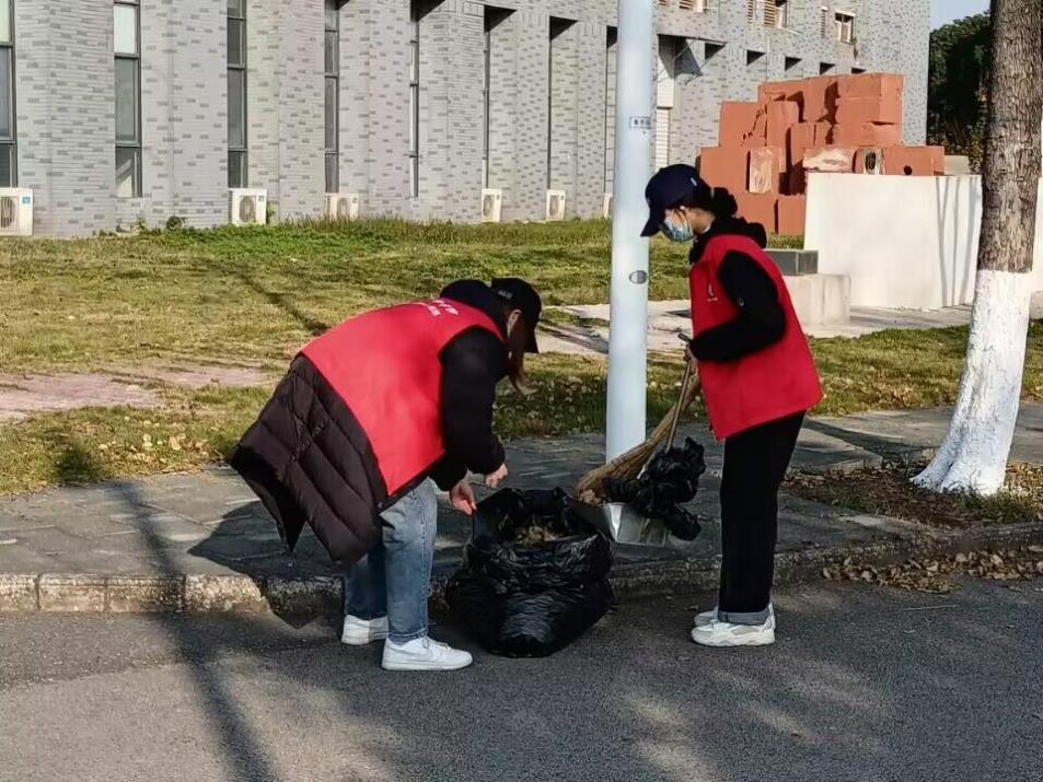 下午两点,志愿者们早早地到达集合地点拿好劳动工具,跟随清洁阿姨的脚步有序前往知音路、子期路等公司主干道进行落叶清扫。在“师傅们”的耐心指导下,大家很快掌握了清扫落叶的要领,大家分工明确,密切合作,有的同学用扫帚收拢落叶,有的同学撑起编织袋,还有的同学徒手将树叶捧装到编织袋里。大家挽起袖子齐动手,既认真又细心,两个小时过后,原本布满落叶的路面焕然一新。