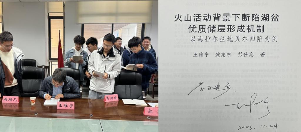 为激发同学们专业学习兴趣,王雅宁副教授还为大家精心准备了自己撰写的地质专业书籍,现场为同学们签名赠书,同学们深受鼓舞。