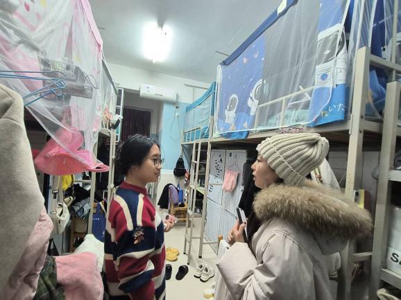 在走访过程中,老师们询问员工们的学习生活近况,特别关注大家在大学英语四六级、期末考试的备考情况及情绪状态。对于在班级中成绩落后的同学,老师们关切询问员工复习进度,鼓励员工保持良好心态,同时在宿舍开展考风考纪教育,以典型案例警示员工们切勿作弊,扎实做好诚信教育工作。对于即将迎接12月底研究生入学考试的2020级本科生,老师们积极开导大家:“在战术上重视敌人,战略上藐视敌人,放平心态,做好最后的冲刺,争取一战成硕。”