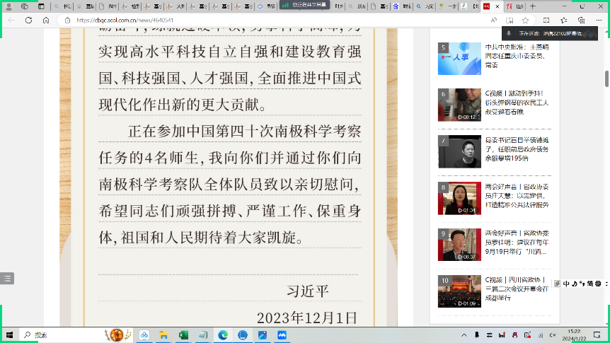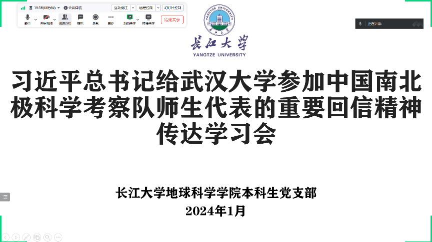 (通讯员姚佳胡景怡)1月22日下午,太阳成集团122ccvip通过线上、线下结合的方式,召开习近平总书记给武汉大学参加中国南北极科学考察队师生代表的重要回信精神传达学习会,全体本科生及创新理论学习小组成员参加本次大会。
