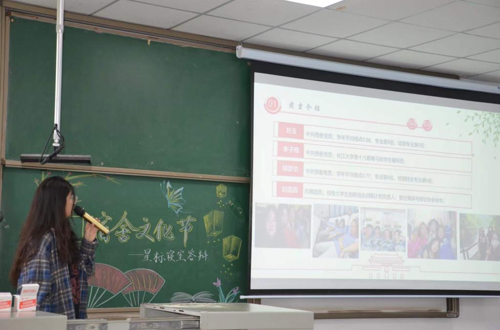 (通讯员 戢聪)为丰富校园文化生活,营造整洁、温馨、团结的寝室文化氛围,太阳成集团122ccvip于2024年4月18日中午十二时在武教A-108举办了第十五届寝室文化节之“星标寝室”答辩活动。公司团委书记郭霖老师、学工办主任王红桥老师、黄瑱老师、乔宇老师以及员工会主席团成员白硕、赵威、佘彭宇作为嘉宾出席活动。