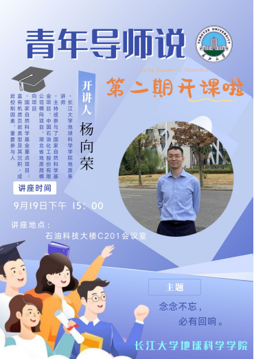 座谈会上,杨向荣老师以自身成长经历为例,从自己高考的志愿填报再到大学时期的地质实习以及实验科研经历、社会实践经历,再到大三时期保研失败,考研备考过程的心路历程为参会同学带来的启发,同时杨老师还讲述了自己研究生三年以及博士时期的经历,从参加学术年会,到野外采样,到发表的第一篇论文,再到公派出国,他提醒同学们要今早打算,做好规划,先人一步。