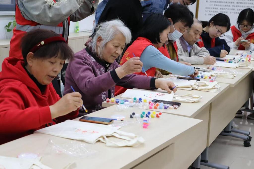 志愿者们提前准备了纯棉环保袋、丙烯颜料和绘画工具,并耐心地向参与者讲解绘制技巧和环保知识。爷爷奶奶们兴致勃勃地挑选图案,有的绘制花草树木,有的勾勒卡通形象,还有的写下环保标语。活动现场欢声笑语不断,五彩斑斓的颜料在环保袋上绽放,原本素净的袋子瞬间变成了独一无二的艺术品。