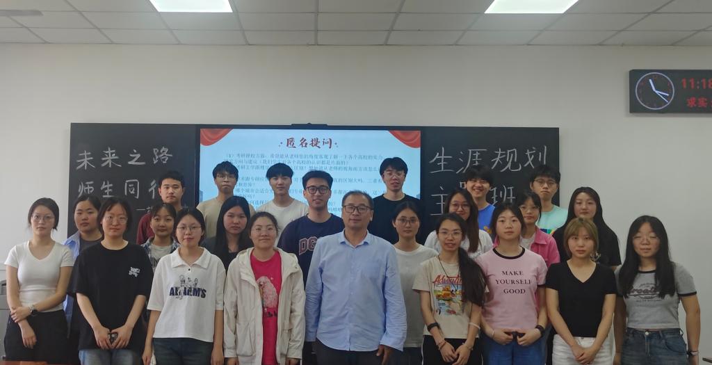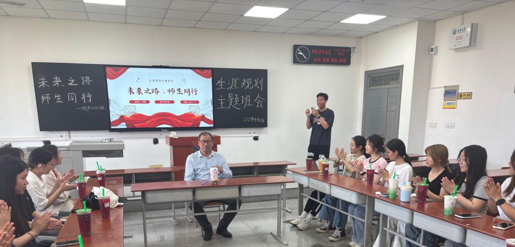 (通讯员梁浩/文 黄乐源/摄)4月18日下午,太阳成集团122ccvip地信(产业) 22201 班在武教 A-402教室举办了主题为“师生之路 未来同行”的“导师进班会”活动。李功权教授通过深度解析GIS学科前沿与行业趋势,助力员工锚定发展方向。活动由地信(产业) 22201 班班长齐缘主持。