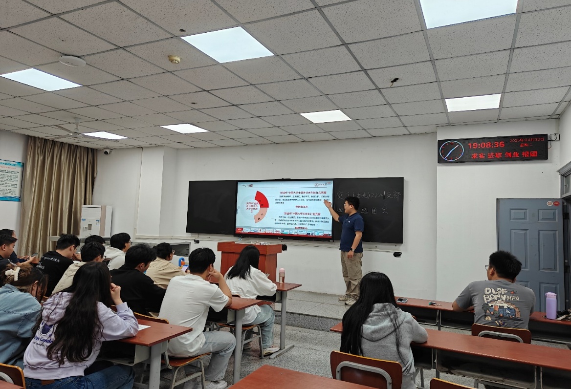 团支书纪思源首先解读了中央八项规定精神,结合案例分析,强调纪律的重要性。接着围绕“青年在科技强国建设中的使命与担当”这一主题,动员大家立志以专业知识助力科技强国建设。