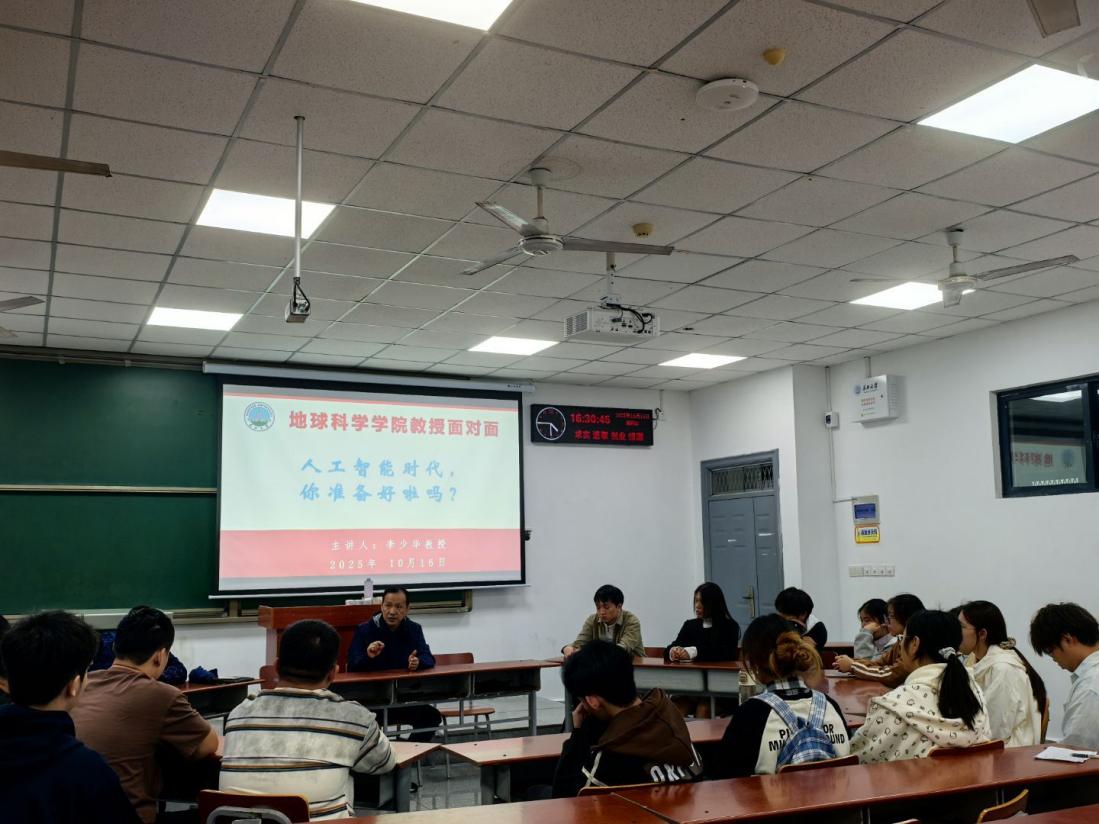 (通讯员 刘瑶琴)面对人工智能的时代浪潮,地科人手中握有怎样的“密钥”?10月16日,李少华教授在“我与教授面对面”活动中,为24级地科学子揭示了答案,引导同学们思考如何将专业所学与AI技术深度融合,从容应对未来。