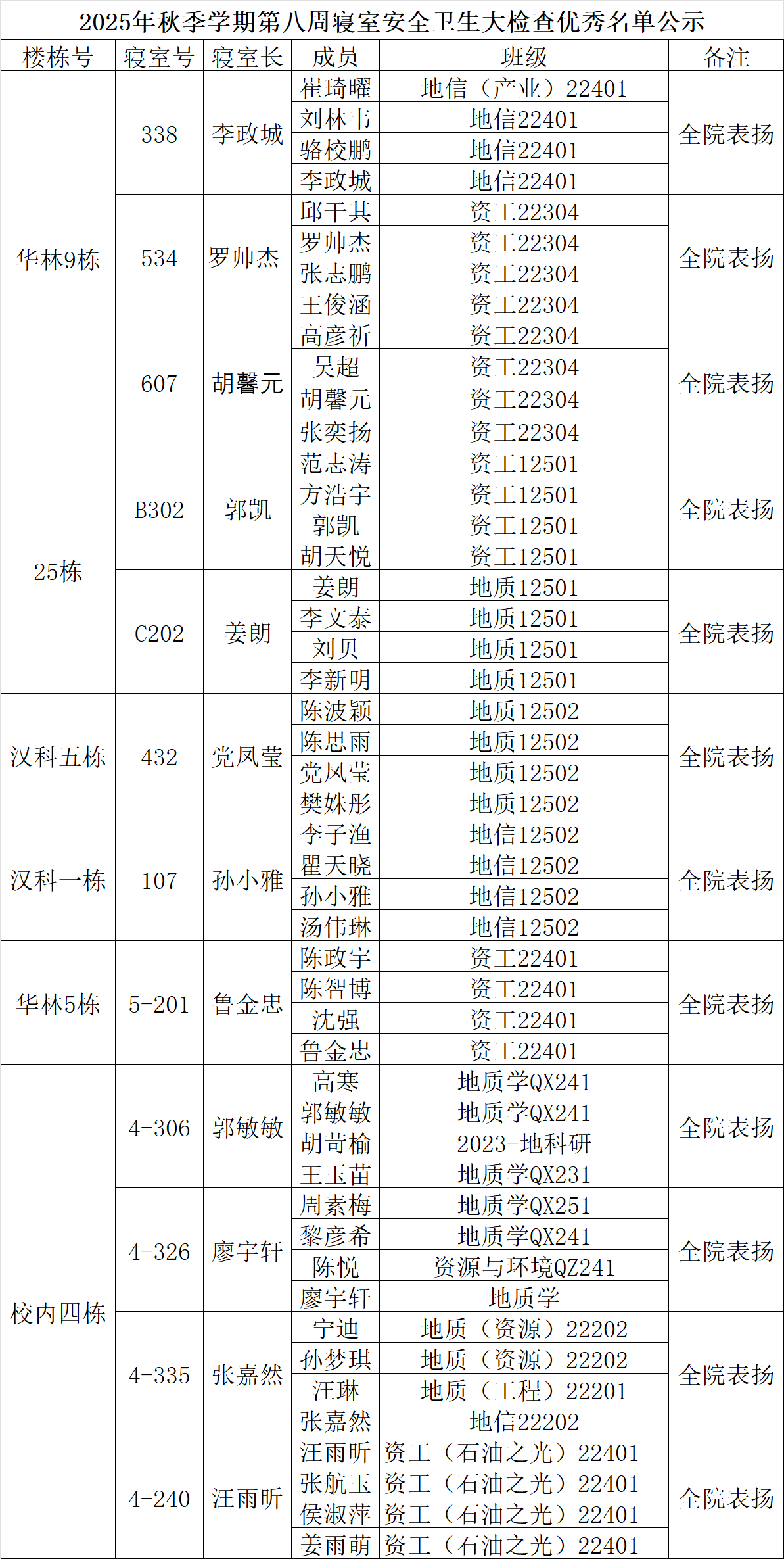 一、通报优秀寝室