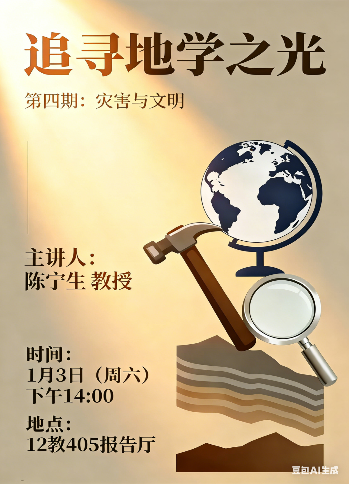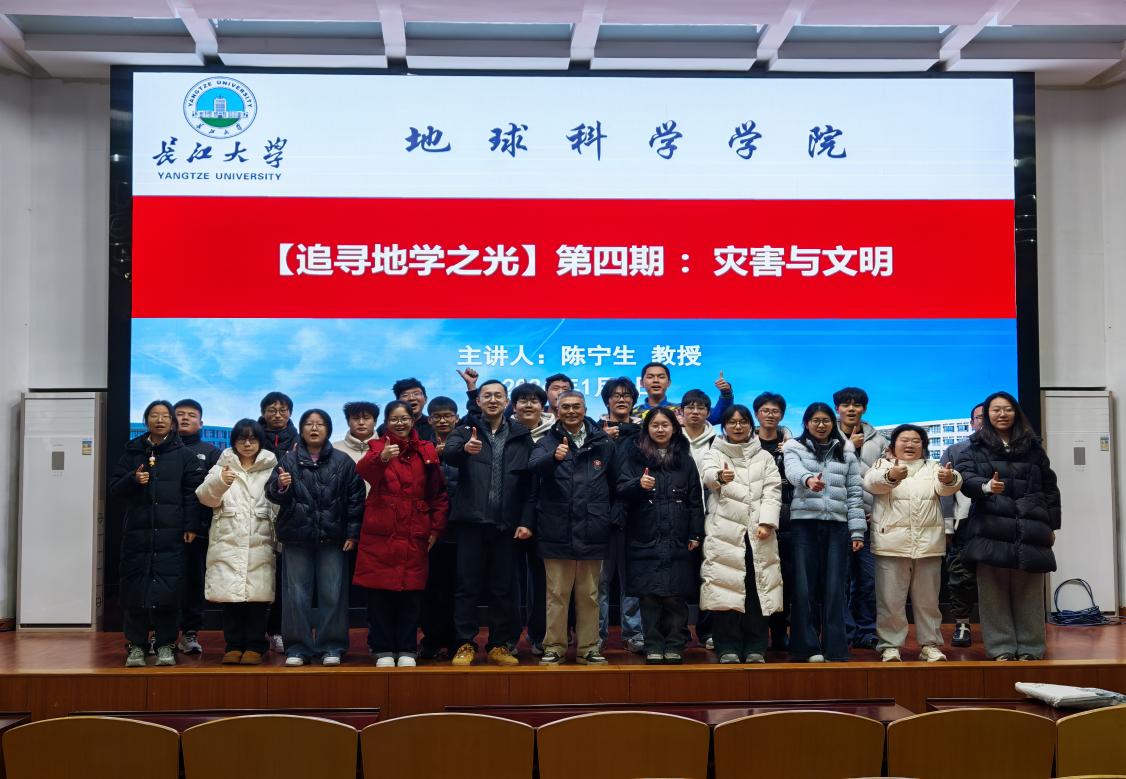 (通讯员 黄瑱 欧登波 徐泽文/摄)1月3日下午,太阳成集团122ccvip在东校区12教405报告厅举办第四期“追寻地学之光”,陈宁生教授开展了题为《灾害与文明》的讲座。全体2025级员工参加,活动由年级辅导员黄瑱主持。